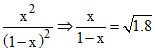 or x = 1.34 - 1.34 x