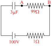 The potential difference between point A & B in steady state will be :-