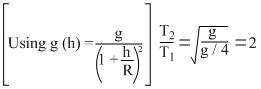 g2 = acceleration due to gravity at a height h = R from earth′s surface = g/4