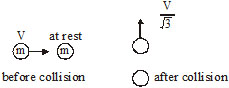 A mass ′m′ moves with a velocity ′V′ and collides inelastically with another indentical mass. After collision the first mass moves with velocity