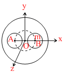 A solid sphere of uniform density and radius 4 units is located with its centre at the origin O of coordinates. Two spheres of equal radii 1 unit, with their centres at A ( - 2, 0, 0) and B (2, 0, 0) respectively, are taken out of the solid leaving behind spherical cavities as shown in figure.