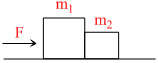 In the figure two blocks of m1 = 20 kg and m2 = 10 kg are in contact with each other and resting on a frictionless table. A horizontal force F = 3N is applied to mass m1, the contact force between m1 and m2 will be :-