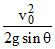 A block slips with constant velocity on a plane inclined at an angle θ. The same block is pushed up the plane with an initial velocity v0. The distance covered by the block before coming to rest is :-