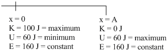 × 2 × 106 × (10-2)2 = 100JThis is basically the energy of oscillation of the particle. K, U and E at mean position (x = 0) and extreme position (x =