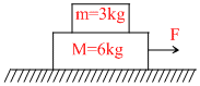 Two blocks of mass M = 6 kg and m = 3 kg are placed as shown below in the figure. Coefficient of friction between M and m is 0.5. Coefficient of friction between M and the surface is 0.4. The maximum horizontal force that can be applied to the mass M so that they move without separation is : (g = 10ms-2) :-
