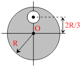 A small disc of radius R/3 is removed from a circular disc of radius R and mass 9M. Then the moment of inertia of the remaining disc about an axis passing through point O and perpendicular to the plane of the disc will be :-