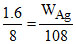 An electrolysis cell contains a solution of Ag2SO4 and has platinum electrodes. A current is passed until 1.6 gm of O2 has been liberated at anode. The amount of silver deposited at cathode will be:-