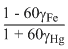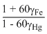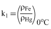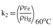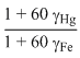 When a block of iron in floats in murcury at 0oC, fraction k1 of its volume is submerged, while at the temperature 60oC, a fraction k2 is seen to be submerged. If the coefficient of volume expansion of iron is γFe and that of murcury is γHg, then the ratio of k1 / k2 can be expressed as
