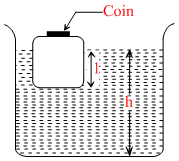 A wooden block, with a coin placed on its top, floats in water as shown in figure. The distance l and h are shown there. After sometimes the coin falls into the water. Then
