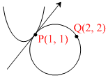 Eq. of tangent to parabola y = x2 at P(1, 1) is