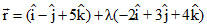 Any point on line is Q(1 - 2λ, - 1 + 3λ, 5 + 4λ)