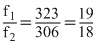 A train moves towards a stationary observer with speed 34 m/s. The train sounds a whistle and its frequency registered by the observer is f1. If the trains′s speed is reduced to 17 m/s, the frequency registered is f2 If the speed of sound is 340 m/s then the ratio f1 / f2 is