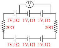 Six cells each of emf 1V and internal resistance 1Ω are connected as shown in fig.