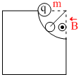 In the figure, a charged sphere of mass m and charge q starts sliding from rest on a vertical fixed circular track of radius R from the position shown. There exists a uniform and constant horizontal magnetic field of induction B. The maximum force exerted by the track on the sphere is :-
