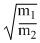 Two monoatomic ideal gases 1 and 2 of molecular masses m1 and m2 respectively are enclosed in separate containers kept at the same temperature. The ratio of the speed of sound in gas 1 to the gas 2 is given by