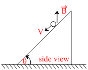 A conducting rod of length l and mass m is moving down a smooth inclined plane of inclination θ with constant velocity v in fig. A current I is flowing in the conductor in a direction perpendicular to paper inwards. A vertically upward magnetic field