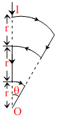 Shown in the figure is a conductor carrying a current I. The magnetic field intensity at the point O (common centre of all the three arcs) is