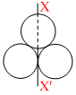 Three solid spheres of mass M and radius R are shown in the figure. The moment of inertia of the system about XX′ axis will be :-