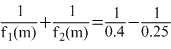 A convex lens of length 40 cm is in contact with a concave lenses of focal length 25 cm. The power of the combination is