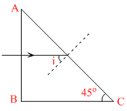 Hence, the ray for which μ > 1.414, so they will suffer TIR on face AC. Only red comes out from this face.