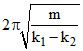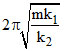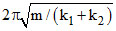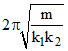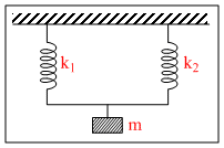 The spring constants of two springs of same length are k1 and k2 as shown in figure. If an object of mass m is suspended and set vibration, the time period will be :