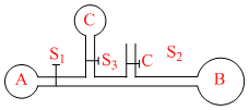 The adjoining diagram shows three soap bubbles A, B and C prepared by blowing the capillary tube fitted with stop cocks S, S1, S2 and S3 With stop cock S closed and stop cocks S1, S2 and S3 opened