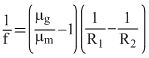 Therefore, in the medium it will behave like a convergent lens of focal length 3.5 R. It can be understood as μm > μg, the lens will change its behaviour.