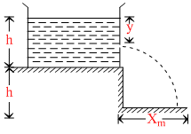 A tank is filled upto a height h with a liquid and is placed on a platform of height h from the ground. To get maximum range xm a small hole is punched at a distance of y from the free surface of the liquid. Then :-