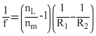Where, nL = Refractive index of lens and