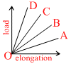 The load versus elongation graph for four wires of the same material and same length is shown in the figure. The thinnest wire is represented by the line.