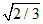 An ac source of angular frequency ω is fed across a resistor R and a capacitor C in series. The current registered is I. If now the frequency of source is changed to ω/3 (but maintaining the same voltage), the current in the circuit is found to be halved. Then the ratio of reactance to resistance at the original frequency ω is :
