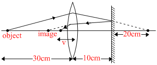 A biconvex lens of focal length 15 cm is in front of a plane mirror. The distance between the lens and the mirror is 10 cm. A small object is kept at a distance of 30 cm from the lens. The final image is