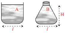 Two vessels A and B have the same base area and contain water to the same height, but the mass of water in A is four times that in B. The ratio of the