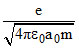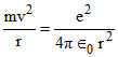 In the Bohr model of a hydrogen atom, the centripetal force is furnished by the coulomb attraction between the proton and the electron. If a0 is the radius of the ground state orbit, m is the mass, e is the charge on the electron and λ0 is the vacuum permittivity, the speed of the electron in first excited state is :-