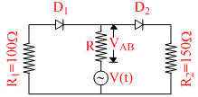 In the circuit given below, V(t) is the sinusoidal voltage source, voltage drop VAB(t) across the resistance R is :-