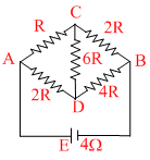 Thus, no current will flow across 6 R of the side CD. The given circuit will now be equivalent to