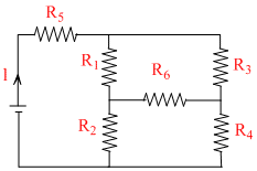 Current I can be independent of R6 only when R1, R2, R3, R4 and R6 from a balanced Wheatstone′s bridge.