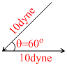 Two forces, each numerically equal to 10 dyne are acting as shown in the following figure.