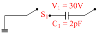 When S3 is closed, due to attraction with opposite charge, no flow of charge take place through S3. Therefore, potential difference across capacitor plates remains unchanged or V1 = 30 V, and V2 = 20 V.