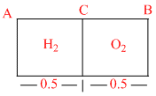 As shown in fig AB is one metre long cylinder. At the ends A&B and middle point C these are thin flexible diapharm there is H2 in AC and O2 filled in part BC. diapharm A & B are oscillated with some freq. when there is antinode at C then ratio of their minimum frequency na / nb will be :