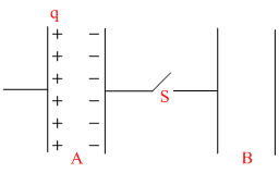 Due to attraction with positive charge, the negative charge on capacitor A will not flow through the switch S.