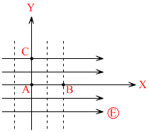 A uniform electric field pointing in positive x-direction exists in a region. Let A be the origin, B be the point on the x-axis at x = +1 cm and C be the point on the y-axis at y = +1 cm. Then the potetntail at the point A, B and C satisfy