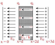 A dielectric slab of thickness d is inserted in a parallel plates capacitor whose negative plate is at x = 0 and positve plates is x = 3d. The slab is equidistant from the plates. The capacitor is given some charge. As x goes from 0 to 3d