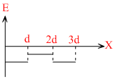 The magnitude and direction of electric field at different points are shown in the figure. The direction of the electric field remains the same. Hence, option (b) is correct. Similarly, electric lines always flow from higher to lower potential, therefore, electric potential increases continuously as we move from x = 0 to x = 3d.