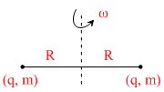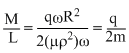 Two particles, each of mass m and charge q, are attached to ends of a light rigid rod of length 2R. The rod is rotated at a constant angular speed about a perpendicular axis passing through its centre. The ratio of the magnitude of the magnetic moment of the system and its angular momentum about the centre of the rod is