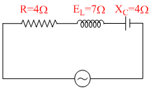 A power transformer (step up) with an 1 : 8 turn ratio has 60 Hz, 120 V across the primary; the load in the secondary is...A capacitor of capacity C is connected in A.C. circuit. The applied emf is V = V0 sinωt, then the current is :...An AC circuit draws 5A at 160 V and the power consumption is 600 W. Then the power factor is:-...In the given figure, the potential difference is shown on R, L and C. The e.m.f. of source in volt is :...If the magnetic field of a light wave oscillates parallel to y-axis and is given by By = Bm sin (kz - ωt), The dire...