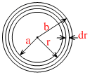 Consider an elements of thickness dr at a distance r from the centre. The number of turns in this elements,