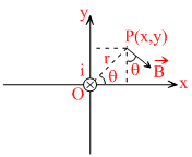 A long straight wire along the z-axis carries a current i in the negative z-direction. The magnetic vector field