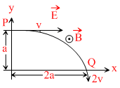 follows a trajectory from P to Q as shown in figure. The velocities at P and Q are
