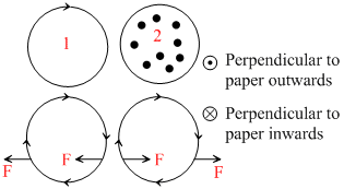 magnetic field passing through it i.e., induced current in loop 2 will also be clockwise as shown in the figure. The loops will now repel each other as the currents at the nearest and farthest points of the two loops flow in opposite directions.